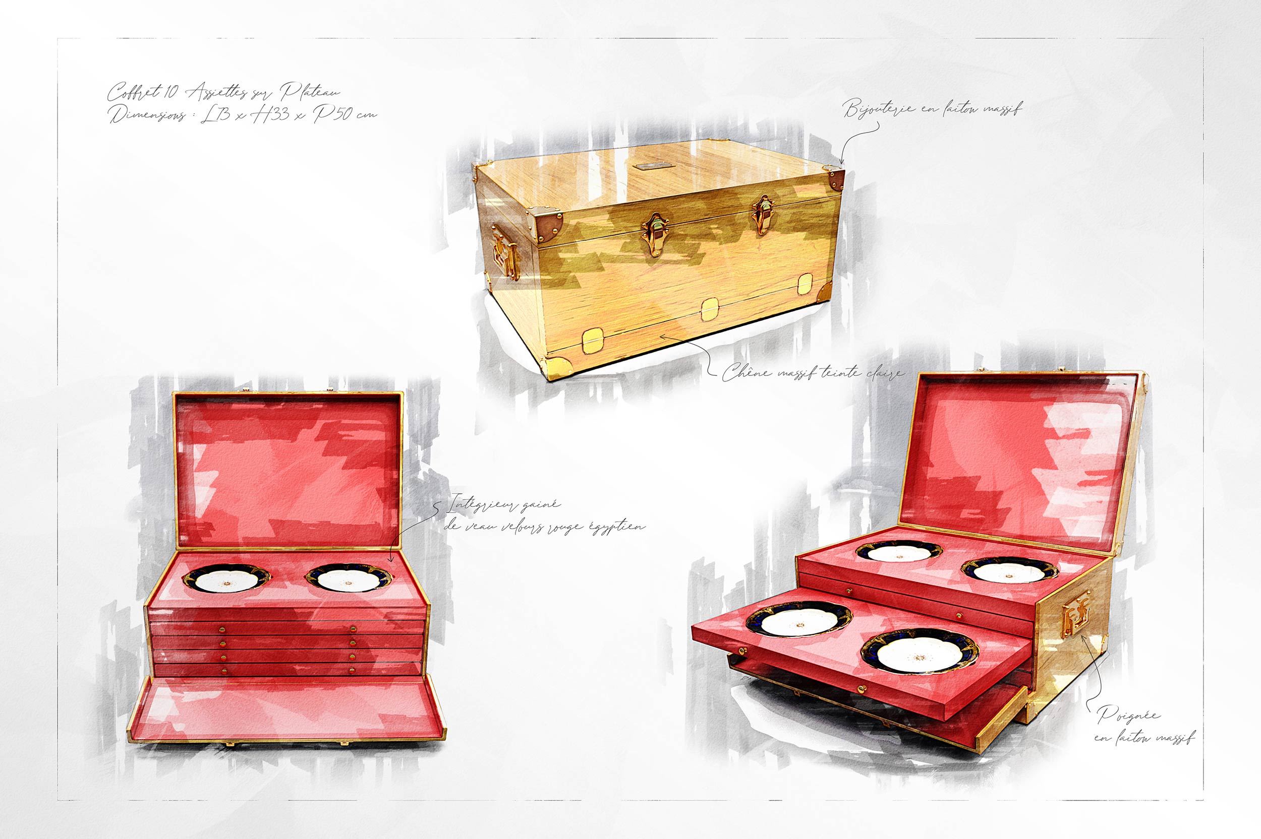 Our sketches were concretized by the design of the trunks, écrins and boxes