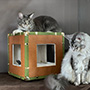 The interior scratching posts are made of interchangeable corrugated cardboard. |