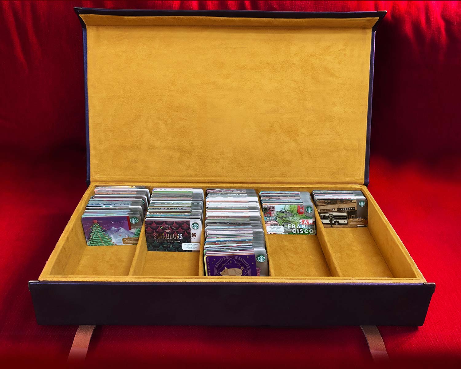 This box, with strap closure, was specially designed to serve as a case for a collector's Starbucks cards.
