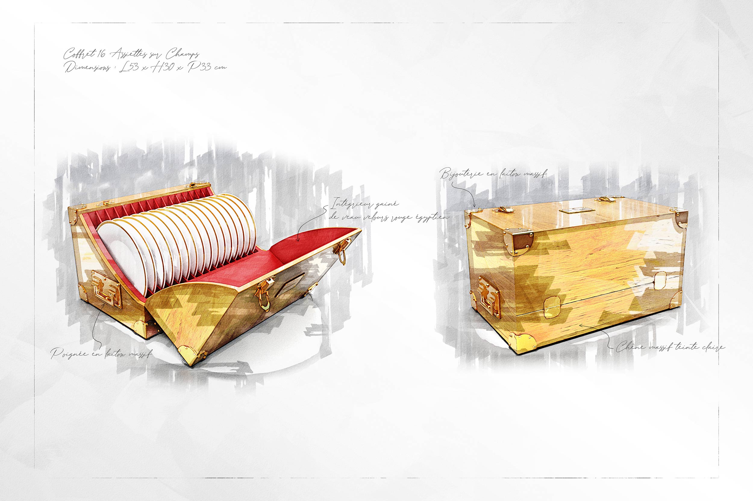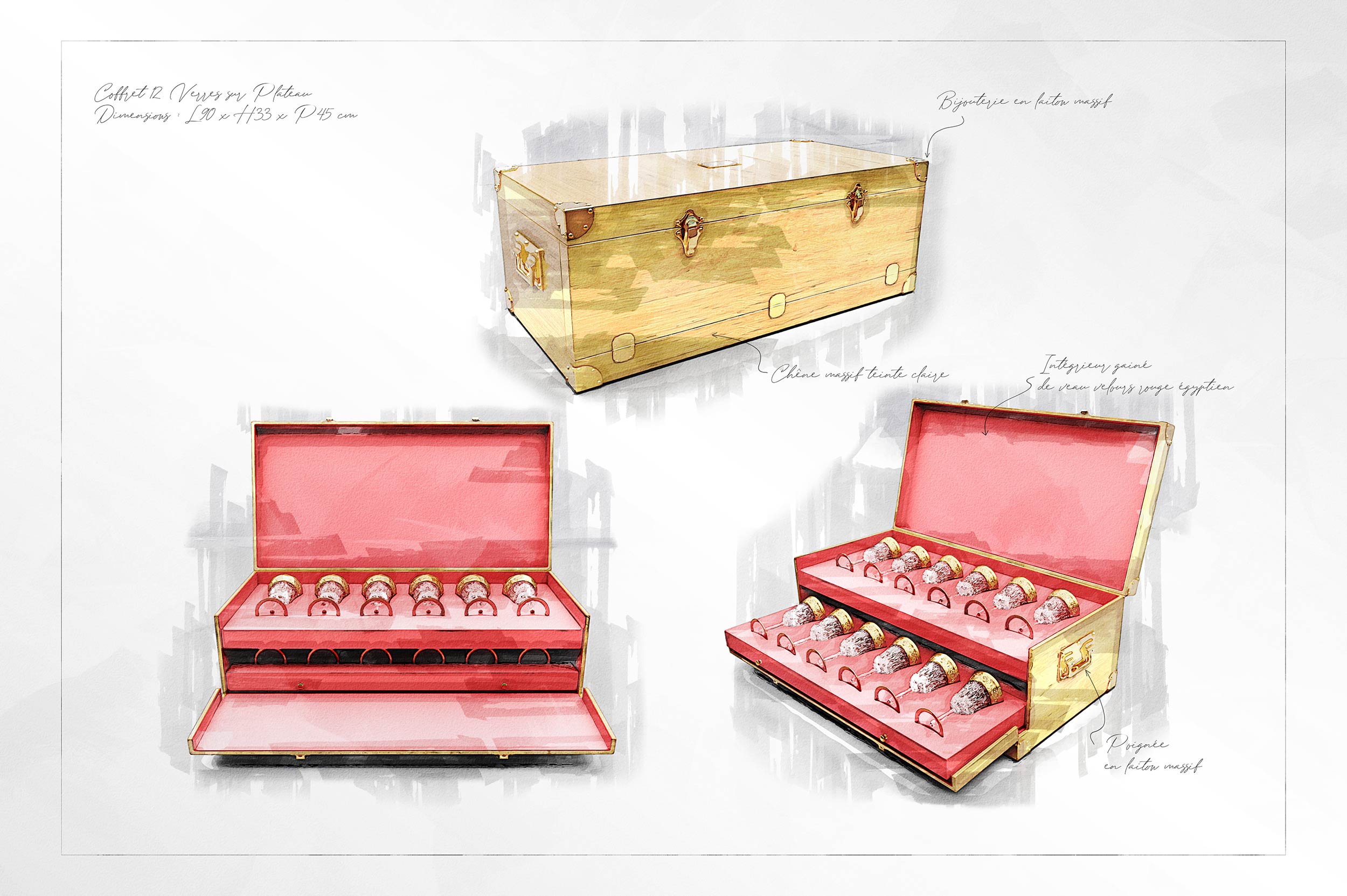 Our sketches were concretized by the design of the trunks, écrins and boxes